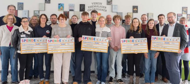 Unter dem Motto „Das Georgianum ist bunt“ wurde das Schulfest Ende August mit großem Einsatz und Begeisterung aller Beteiligten gefeiert! Ein Teil der Einnahmen wird für die Gestaltung des Schulhofs verwendet. Zum Beispiel sollen neue Sitzgelegenheiten auf den Schulhöfen geschaffen werden. Der andere Teil ging nun als Spende an die folgenden fünf Organisationen: die Lingener Tafel, das Christophoruswerk, Löwenherz Lingen, den Krebsfond Lingen und das Tierheim Lingen. Die regionalen Einrichtungen freuten sich sehr über die Unterstützung und der Schulleiter Herr Sieberg hob bei der Übergabe der symbolischen Schecks das große Engagement der gesamten Schulgemeinschaft hervor.