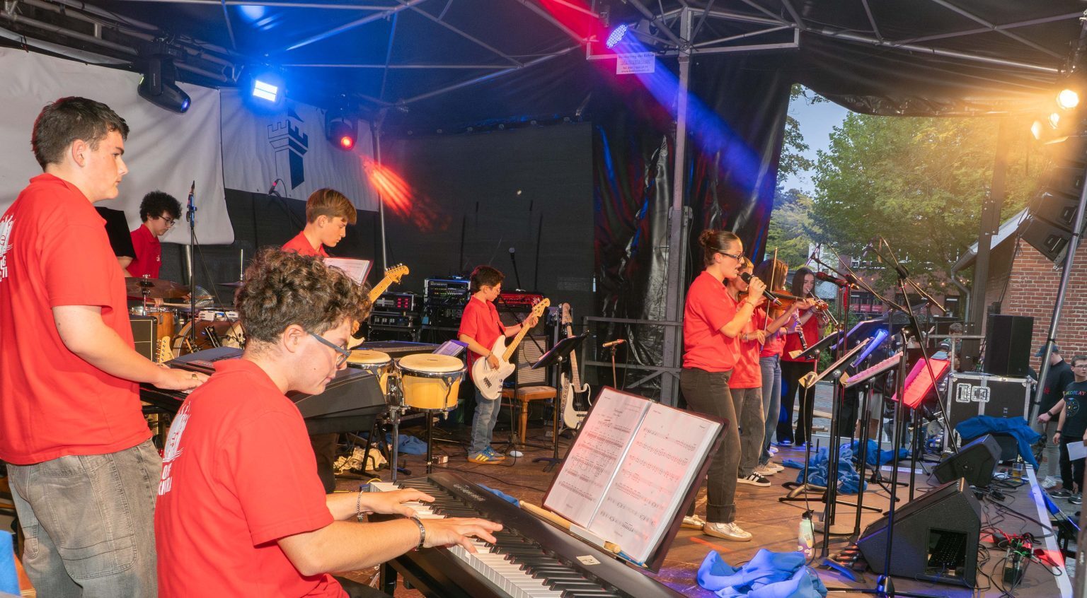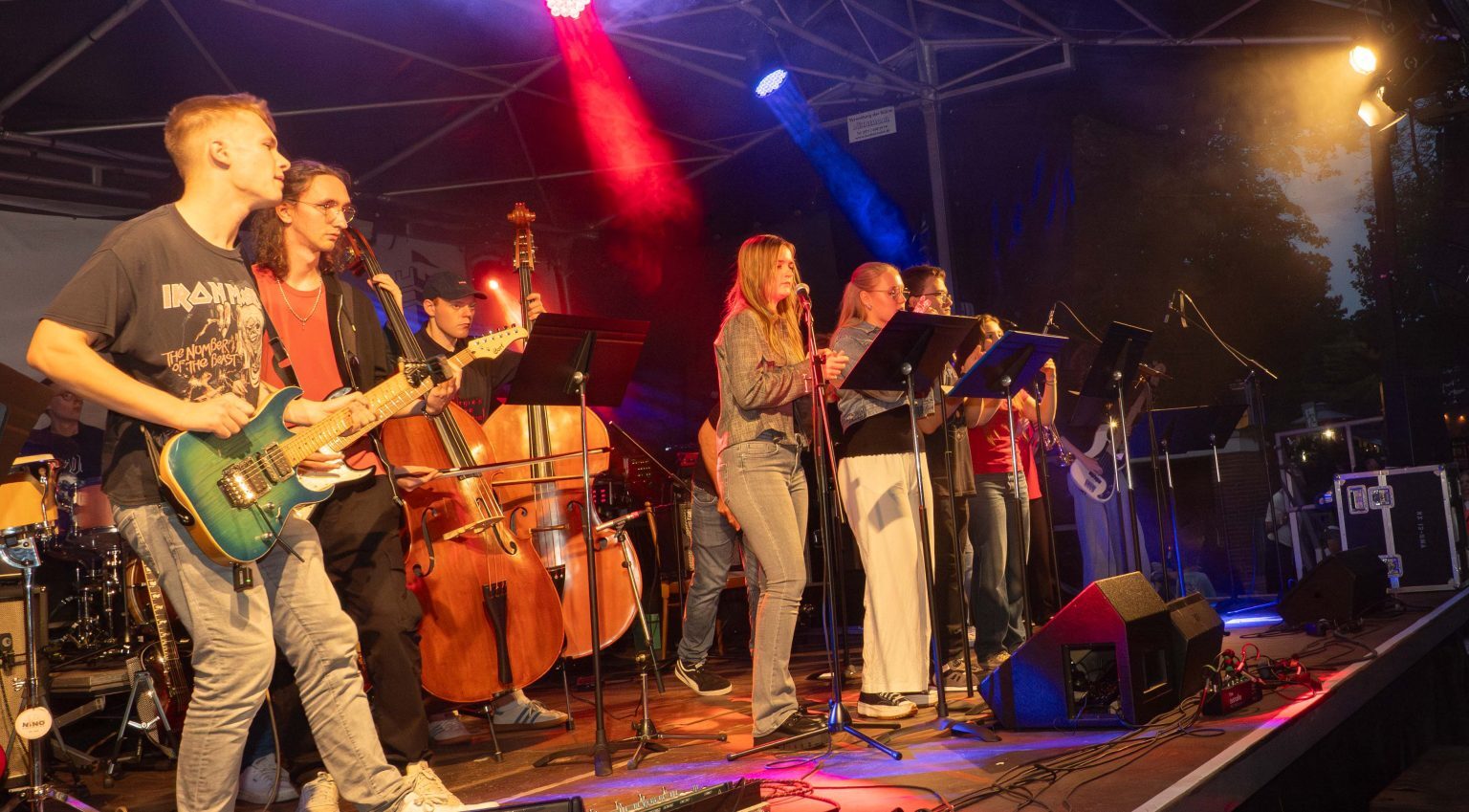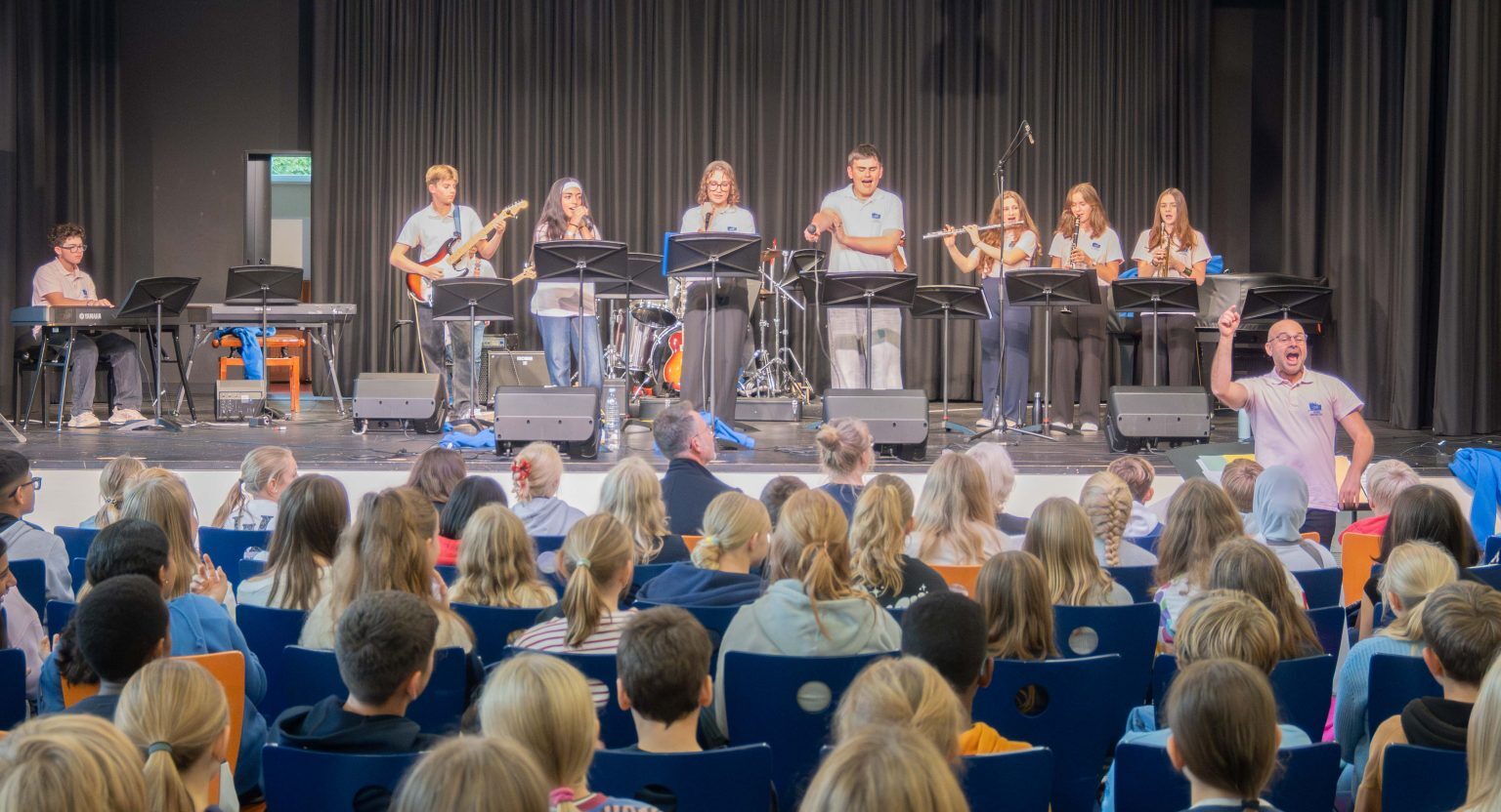Auf eine sehr kurze Nacht folgte gleich am nächsten Morgen eine intensive Probe des EYO für das anstehende Schulkonzert vor etwa 350 SchülerInnen der Jahrgänge 6 und 7 in der Mensa.