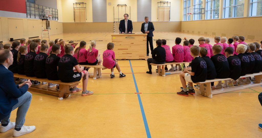 „Das ist schon etwas sehr Besonderes, dass wir heute zwei Zertifikate für den Fachbereich Sport erneuern konnten“, betont Schulleiter Lucas Sieberg bei der feierlichen Übergabe der neuen Zertifikate zur Sportfreundlichen Schule und Talentschule des Sports am vergangenen Montag (4. November 2024) in der großen Sporthalle der Schule. „Beide Zertifikate legen dar, dass das Fach Sport einen besonderen Stellenwert am Georgianum hat.“