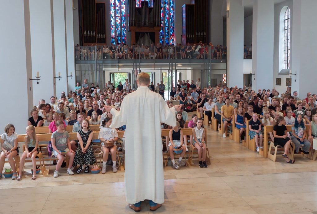Zu Beginn des Wortgottesdienstes begrüßte Sebastian Grave aus dem Pastoralteam der Maria Königin Gemeinde die Anwesenden und zeigt sich bass erstaunt darüber, dass so viele da seien, um sich zusammen unter den Segen Gottes zu stellen.