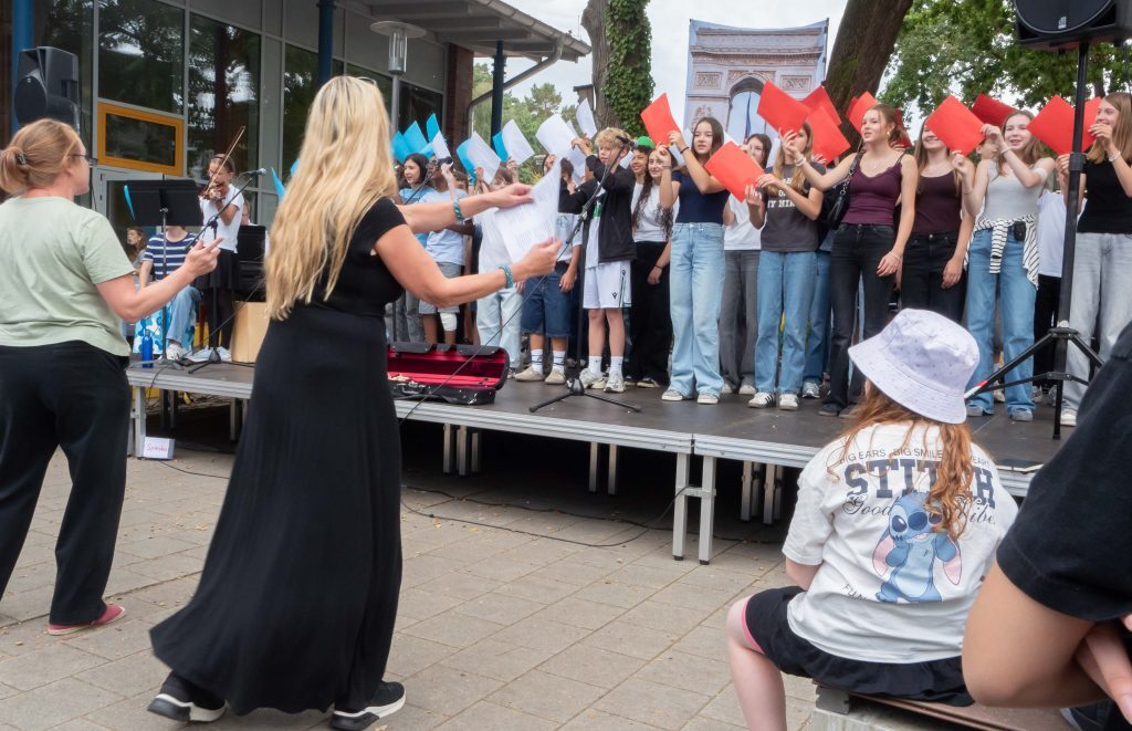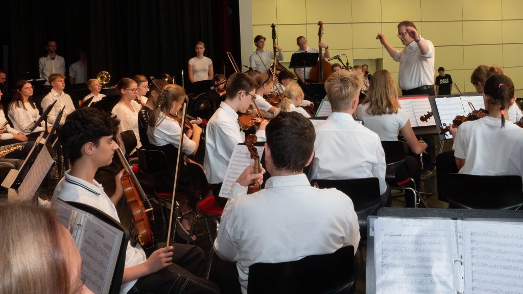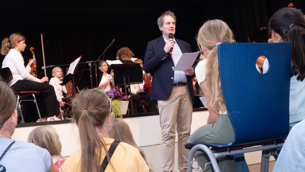 Der Nachmittag startete in den Mensa, wo Schulleiter Lucas Sieberg – eingerahmt von musikalischen Beiträgen – die Gäste herzlich begrüßte und einen ganz besonderen Dank an das Orga-Team der Schule richtete. F