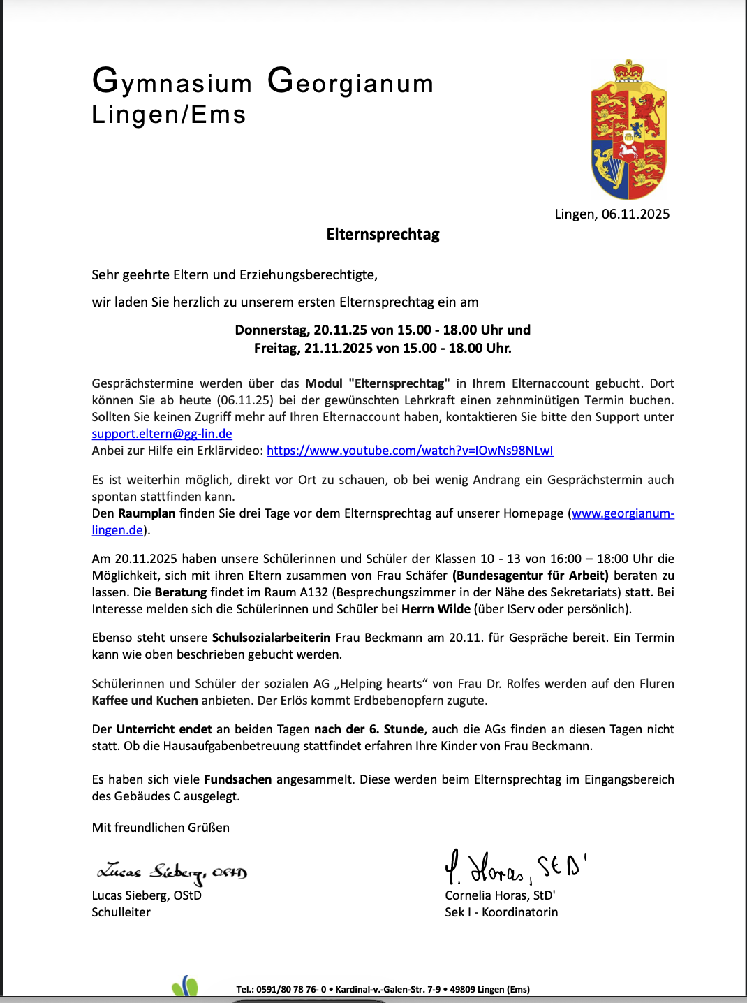 In seiner Begrüßungsrede hob Herr Lucas Sieberg die hohe Bedeutung dieses Projekts für das Gymnasium Georgianum hervor. Dazu führte er aus, dass er hoffe, dass die Schülerinnen und Schüler nie in die Situation kommen werden, eine Wiederbelebung nötig zu haben. „Doch wenn dies geschehen sollte dann wünsche ich euch, dass ihr in kundige Hände geratet, sodass Euch geholfen werden kann. Und ich wünsche Euch als Ersthelfer, dass Ihr so ausgebildet seid, mutig und sicher helfen zu können“, so Siberg weiter. „Denn als Herzensretterinnen und Herzensretter lernt ihr, in einer Notsituation beherzt zu handeln. Ihr werdet erfahren, wie man durch lebenswichtige Maßnahmen Leben retten kann – und vielleicht seid ihr eines Tages genau die Menschen, die im entscheidenden Moment den Unterschied machen.“