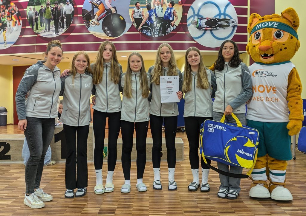 At the end of the last game, we were a little disappointed about the missed opportunities, but in the evening we went to the award ceremony for all 36 teams (18 girls' and 18 boys' teams) happy and proud of our performance at this German championship. Each team received a certificate, a ball bag, a volleyball, a beach volleyball and a warm-up shirt as gifts! The top three teams also received a medal and a ball trolley. The organiser, DVJ, then invited all the players to a party to celebrate their participation and success in the tournament.