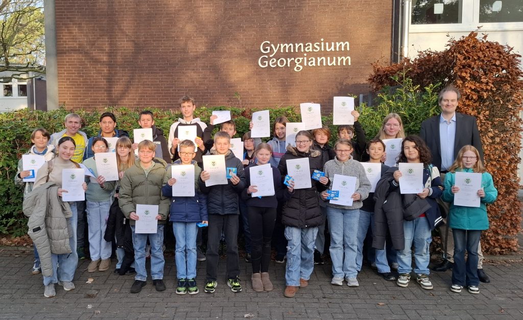 Das Gymnasium Georgianum überzeugt als MINT-freundliche Schule. Im Bereich Mathematik konnten sich mit Madelon Hibbel, Jano Gerling, Tjark Thönnißen und Matthias Klaas gleich vier Schüler der Schule für die Landesrunde der Mathematik-Olympiade qualifizieren. Das sind so viele wie noch nie.