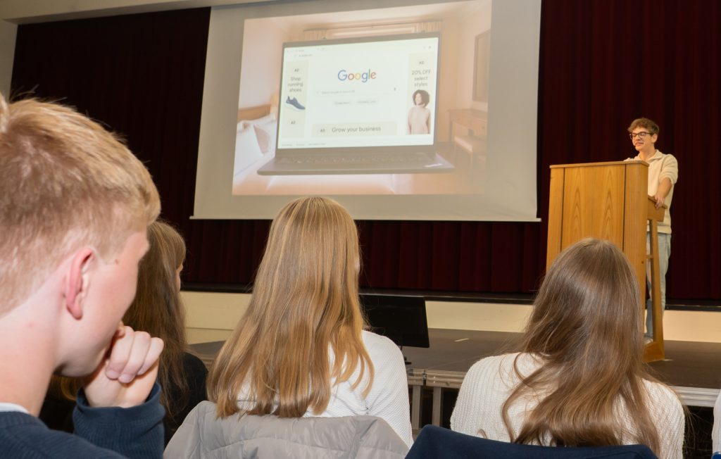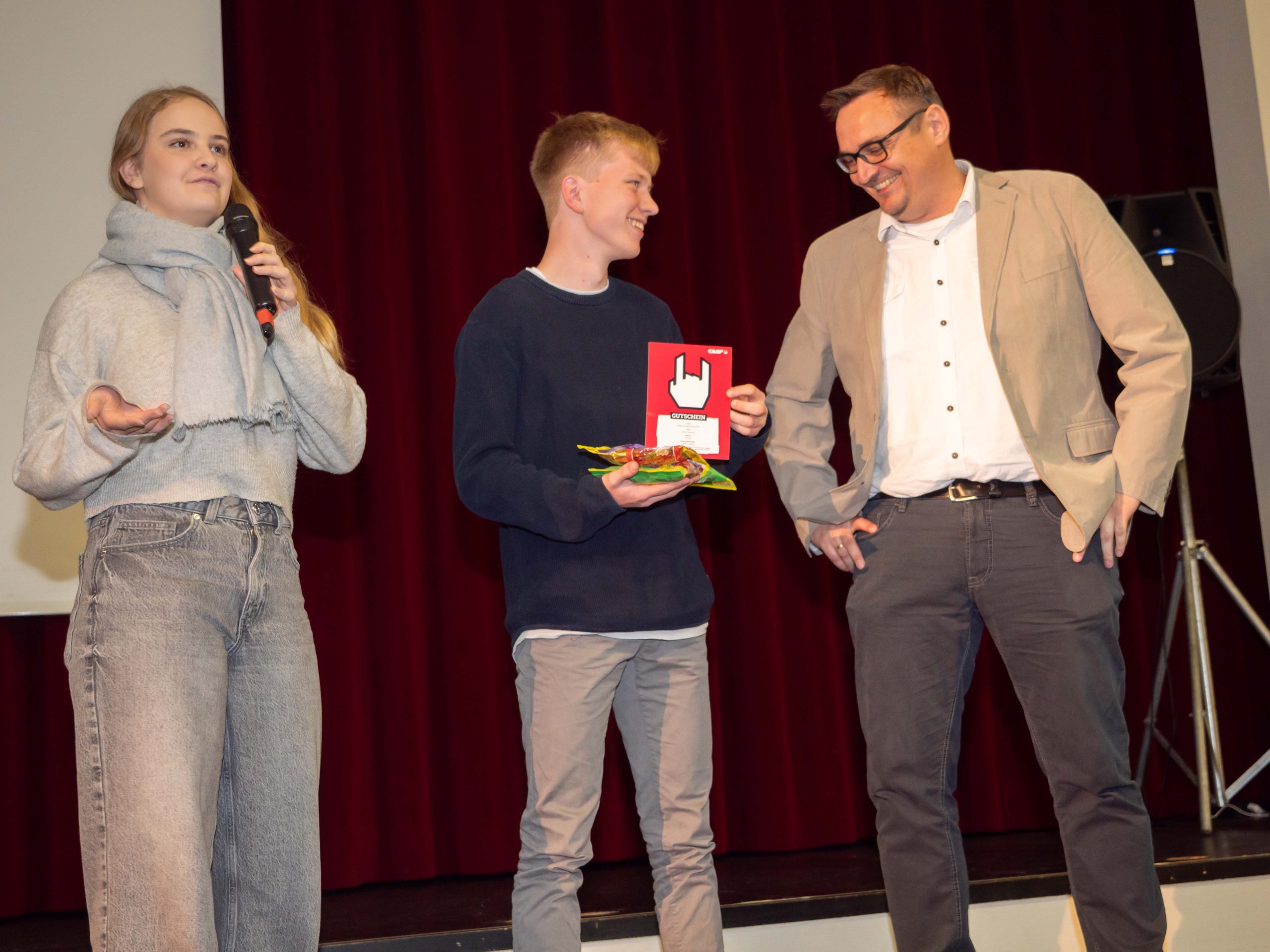 Zunächst stellten Sophia Beck, Emma Teckert, Joah van Westen und Radin Seghatoleslam ihre Erkenntnisse und Umfrageergebnisse zum Thema „Vapes“ vor.
