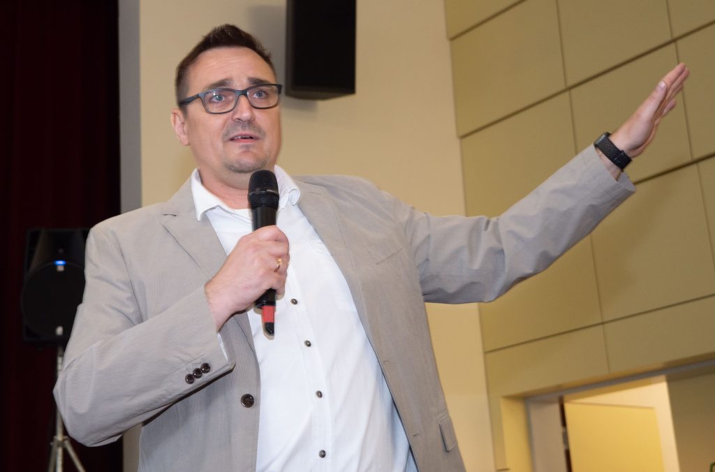 „Die Kreativität in der Gesellschaft stirbt aus!“, so lautete die Leitthese von Danny Stuhler und Jano Gerling. Die beiden Schüler legten dar, dass die Kreativitätsrate tatsächlich etwas in der Gesellschaft sinkt, und stellten deshalb auch gleich Verbesserungsmöglichkeiten vor. Anschließend gab es dann eine Neuheit im Drehtürmodell.