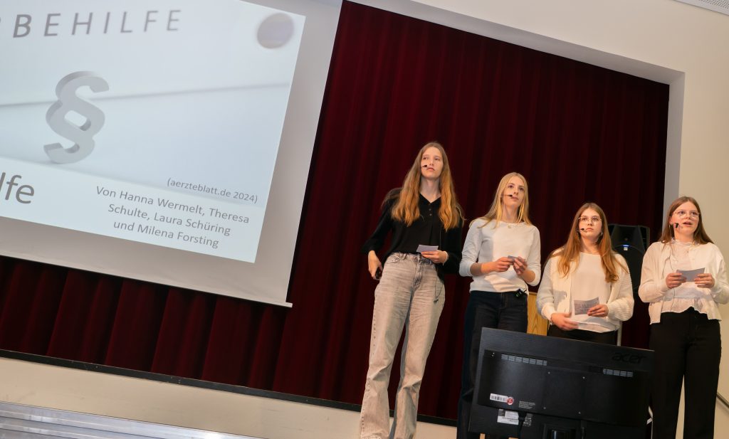 Im Anschluss erörterten Milena Forsting, Laura Schüring, Theresa Schulte und Hanna Wemelt die Frage, ob aktive Sterbehilfe in Deutschland zugelassen werden sollte.