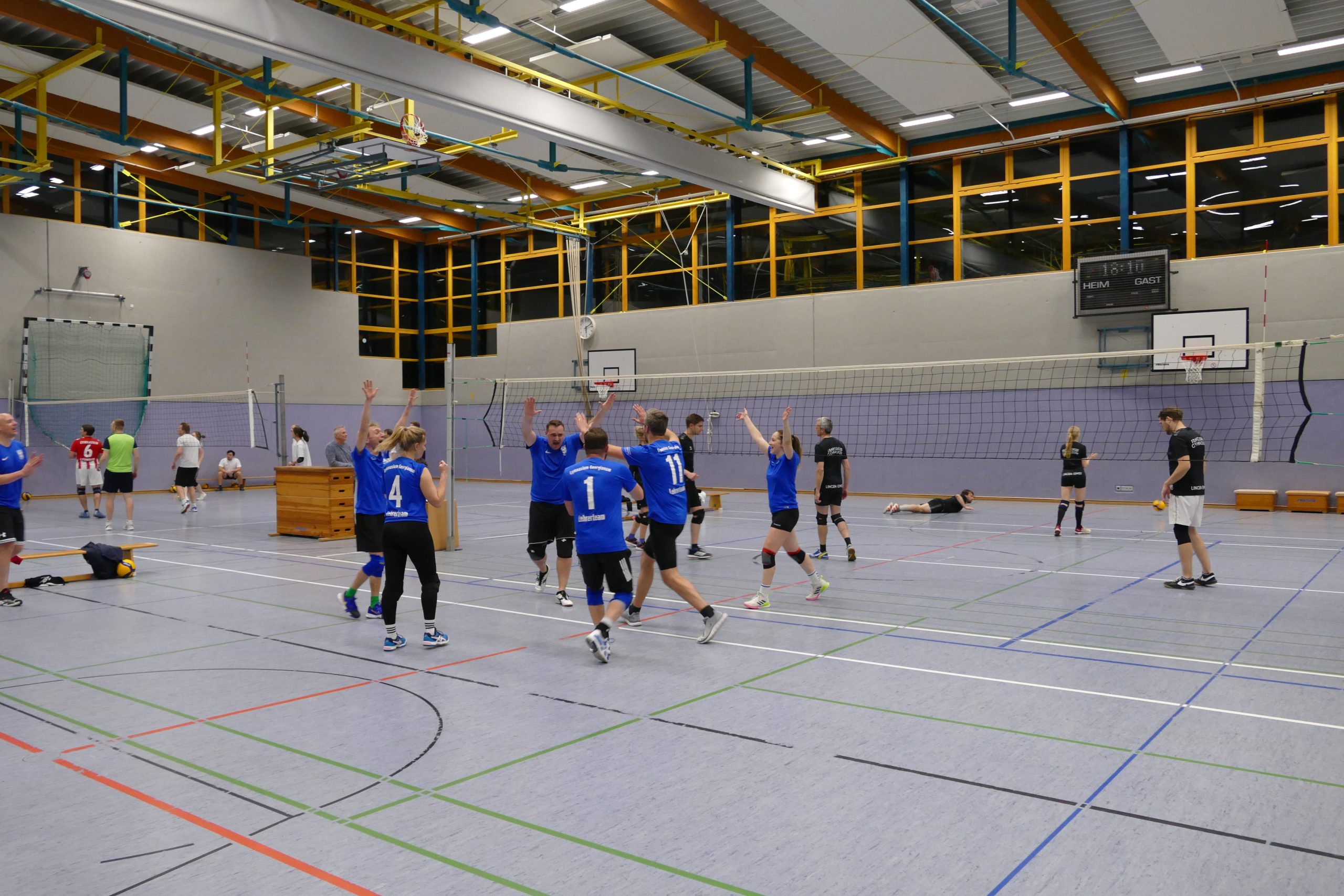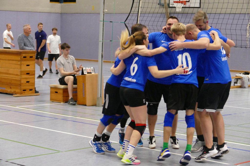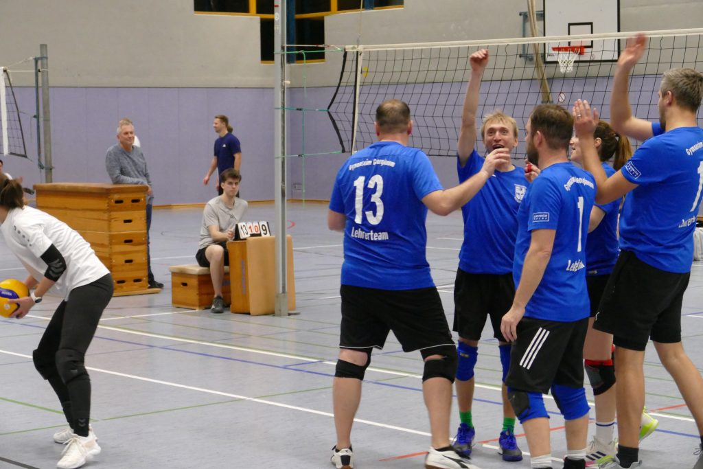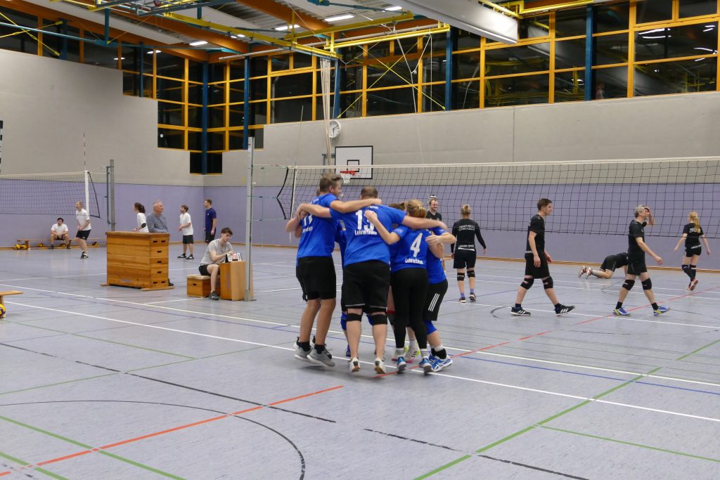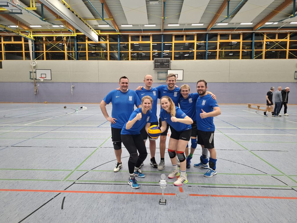 Das war kaum zu glauben. Unser Lehrer-Volleyballteam stand nach der Vorrunde als Titelverteidiger kurz vor dem Aus. Und dann kam die kaum für möglich gehaltene Wende: unser Team holte noch den Pott. Das Team um Jennifer Beel, Julia Krey, Anne Doleski, Henning Bach, Hendrik Greiwe, Sebastian Zermann, Max Fockenbrock und Martin Glosemeyer gewann das Turnier und sicherte sich damit das Double. Und die Lehren? „Gefühlt waren wir in der Vorrunde schon fast raus aus dem Turnier. Und dann noch der Sieg am Ende. Niemals aufgeben!“, resümierte Lehrer Zermann.