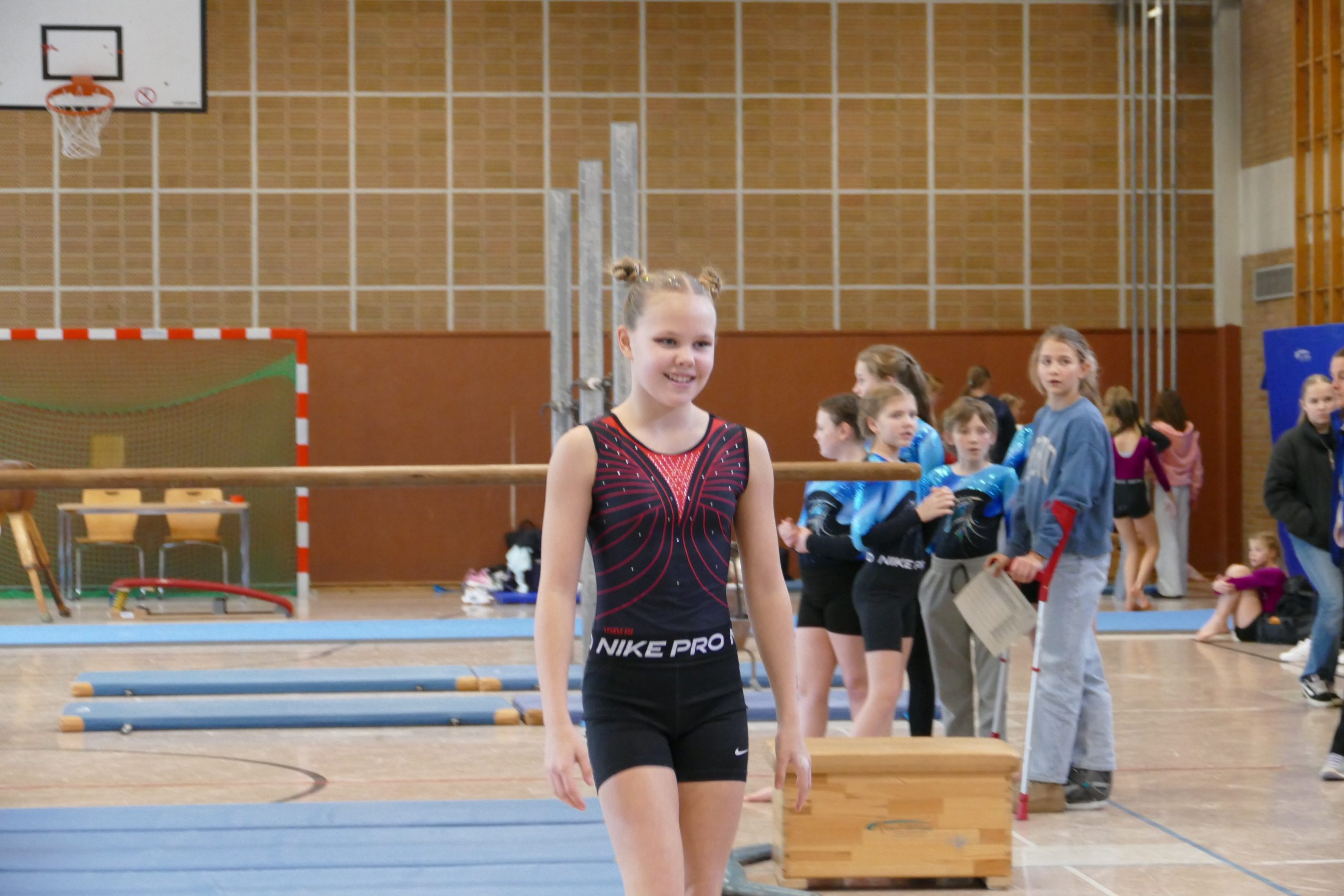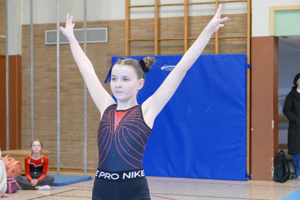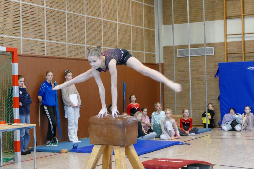 Übung hatten die Kids im Vorfeld des Wettkampfs gehabt. Immer sonntags trafen sich die Schülerinnen und Herr Glosemeyer zum Training und legten damit den Grundstein, wobei die Mädels durch das Training beim KTV Lingen und Olympia Laxten bereits über beste Voraussetzungen verfügten. Beide Lingener Vereine leisten tolle Arbeit. Im Gerätturnen sind Körperspannung, Beweglichkeit und Kraft zentrale Aspekte.