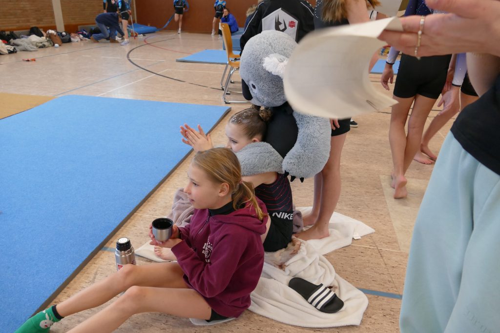 Das Wichtigste allerdings war der Spaß, der sich ergibt, wenn man im Flow, mit anderen verbunden und mit einer spielerischen Leichtigkeit agiert, sodass Momente für die Ewigkeit entstehen. Und das war an vielen Stellen der Fall. Denn an den Geräten und bei der Anspannung ist alles andere als Flow ungewöhnlich. Mit anderen verbunden war das Team, weil es durch starke mannschaftliche Geschlossenheit überzeugte. Zum Ausdruck kam dies auch beim Synchronturnen, wo Maja und Merle sogar eins waren. Bestnote 6.0. Wow! Auch Diana und Elena waren stark und sicherten sich eine 5.0. Klasse war an nahezu allen Geräten Theresa Voss, die Coach Glosemeyer erst am Wettkampftag nominierte. Sie hatte im Training auf ganzer Linie überzeugt. Maja hatte ihren Platz freiwillig an Theresa übergeben und überzeugte damit durch Uneigennützigkeit und Ehrlichkeit. Klasse fürs Team Maja!