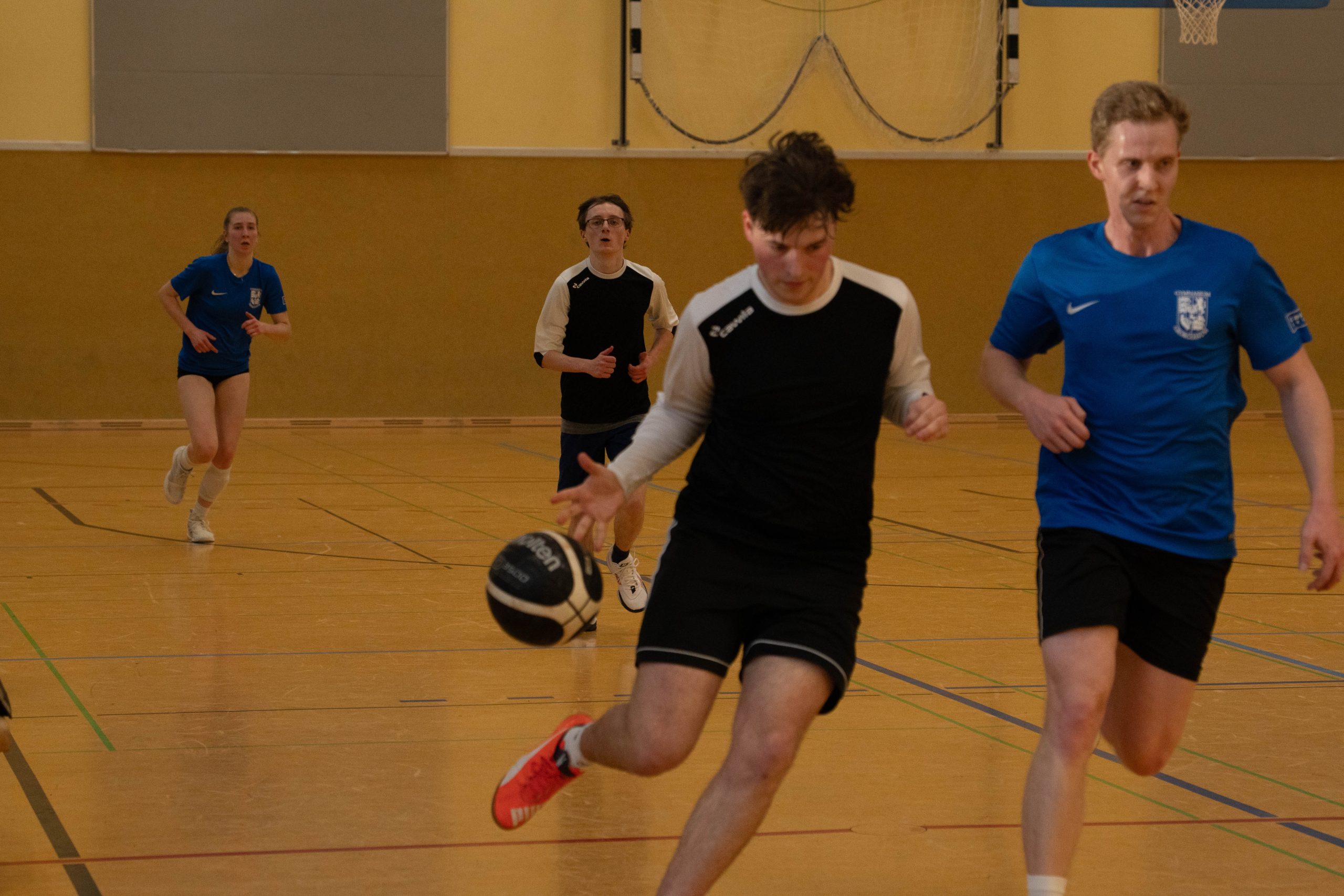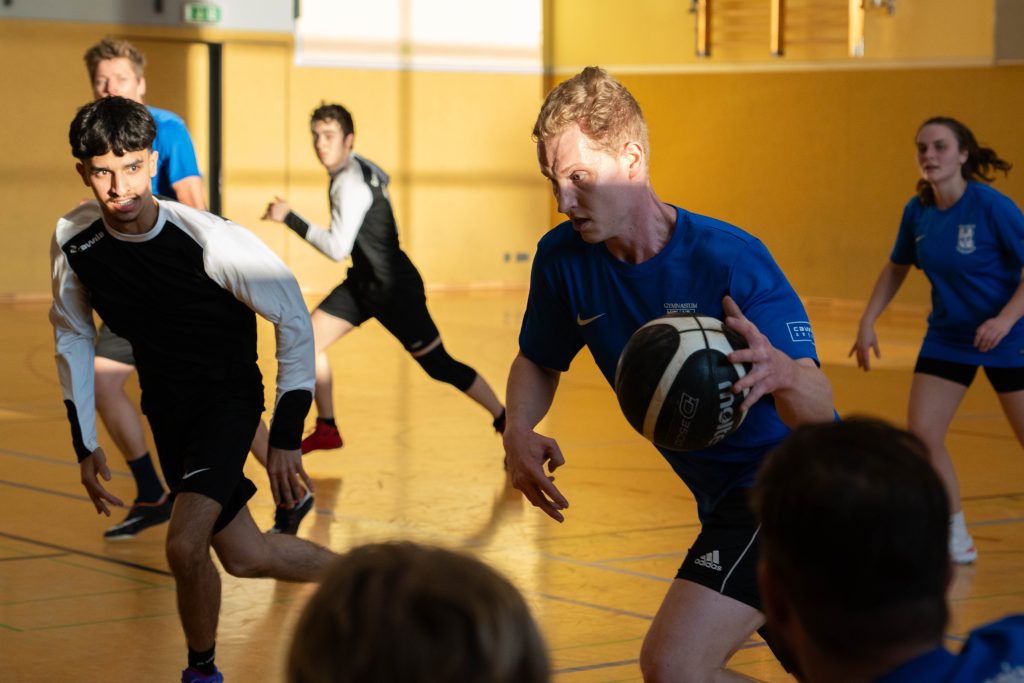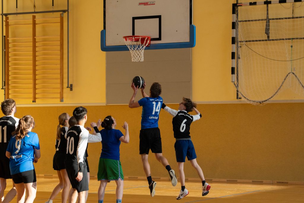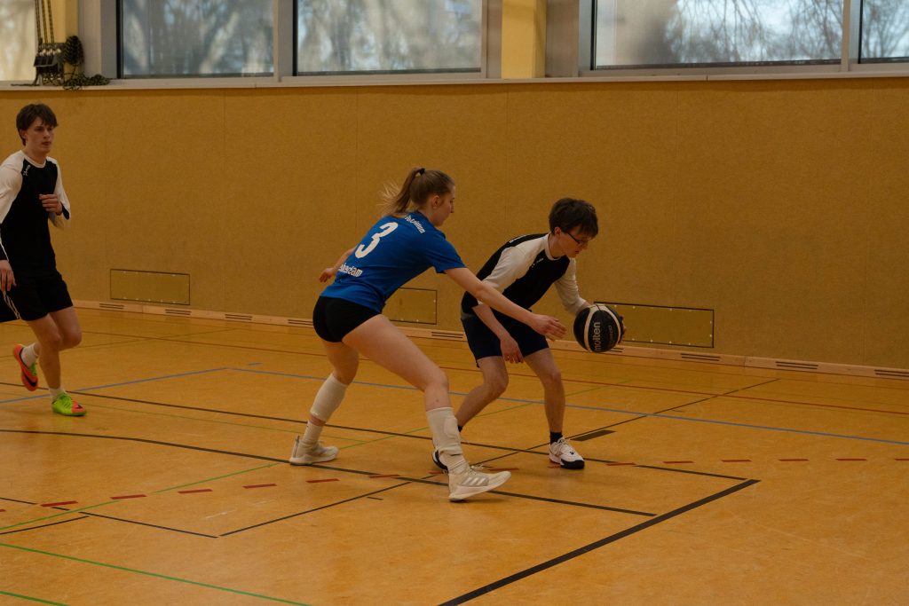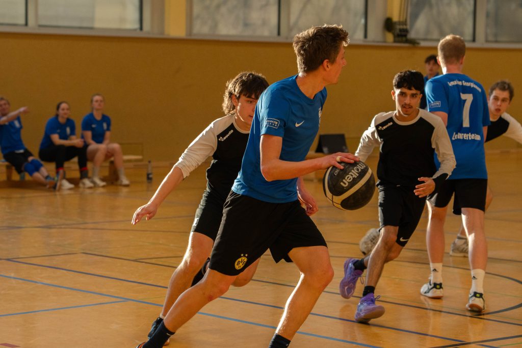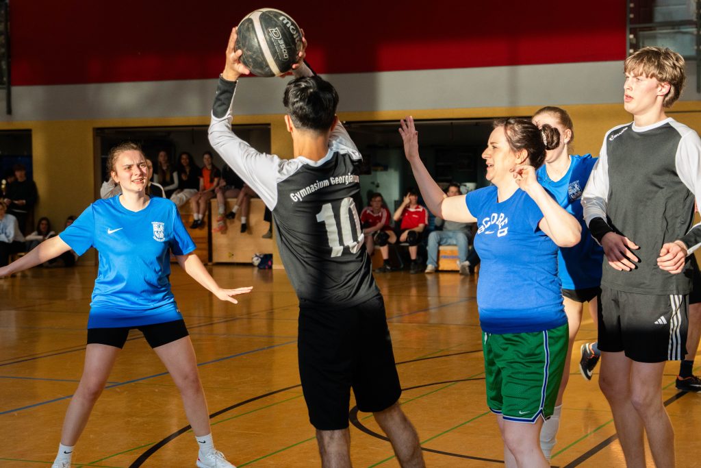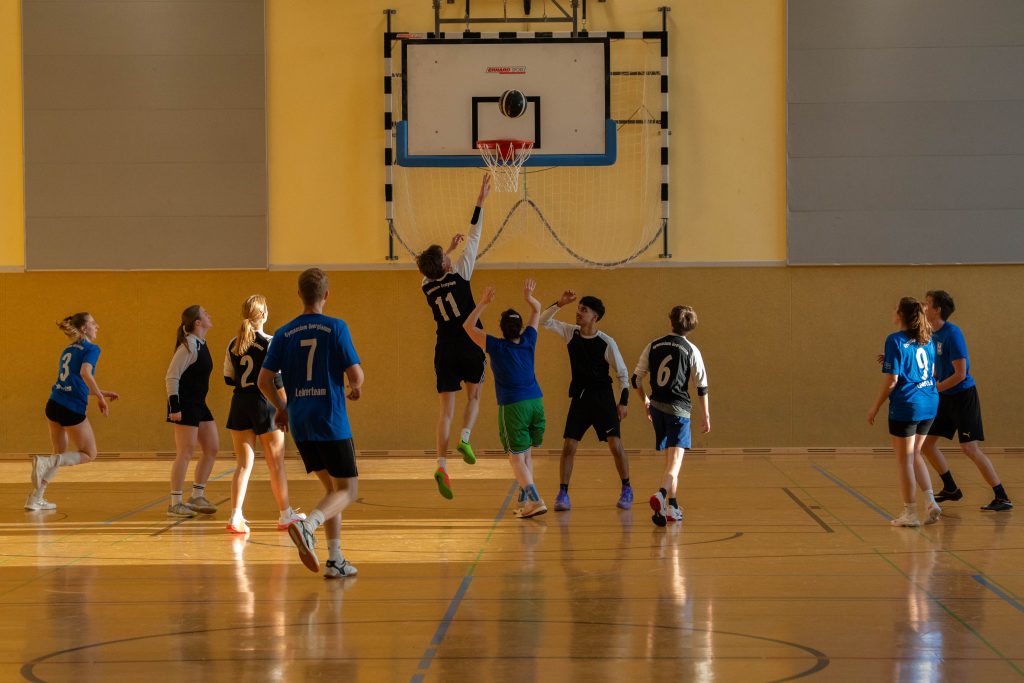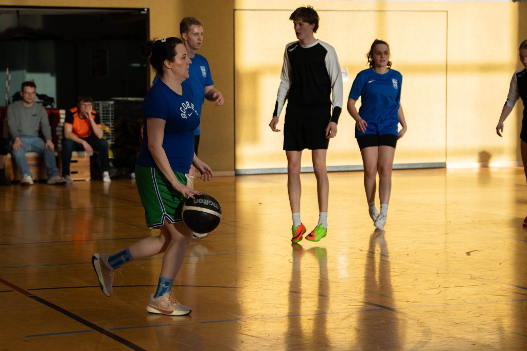Im Basketball-Duell, das das Lehrerteam seit Einführung des Wettbewerbs noch nicht verloren hatte, gelang den Lehrkräften zumindest eine Schönheitskorrektur. Trotz der Ausfälle von Kyra Berends, Hendrik Greiwe und Jürgen Herbrüggen spielte das Team richtig stark. Allen voran Miriam Bach, Marcel Mentrup und Sarah Korte glänzten, doch auch David Janzen, Lena Frerich und Henning Bach wussten zu überzeugen. Obwohl auch die Schüler:innen alles gaben, fehlte es letztendlich an Absprache, sodass das eingespielte Lehrerteam in der zweiten Halbzeit ihren Vorsprung nutzte. „Die Schüler:innen werden nächstes Jahr hoffentlich besser vorbereitet sein“, sagte Anna Dahle, die der beeindruckenden Erfolgsserie der Lehrkräfte im Basketball gerne ein Ende setzen würde. Mit 19:10 stand am Ende der Erfolg, der zum 1:2 und damit zum letztlich gerechten Endergebnis führte.