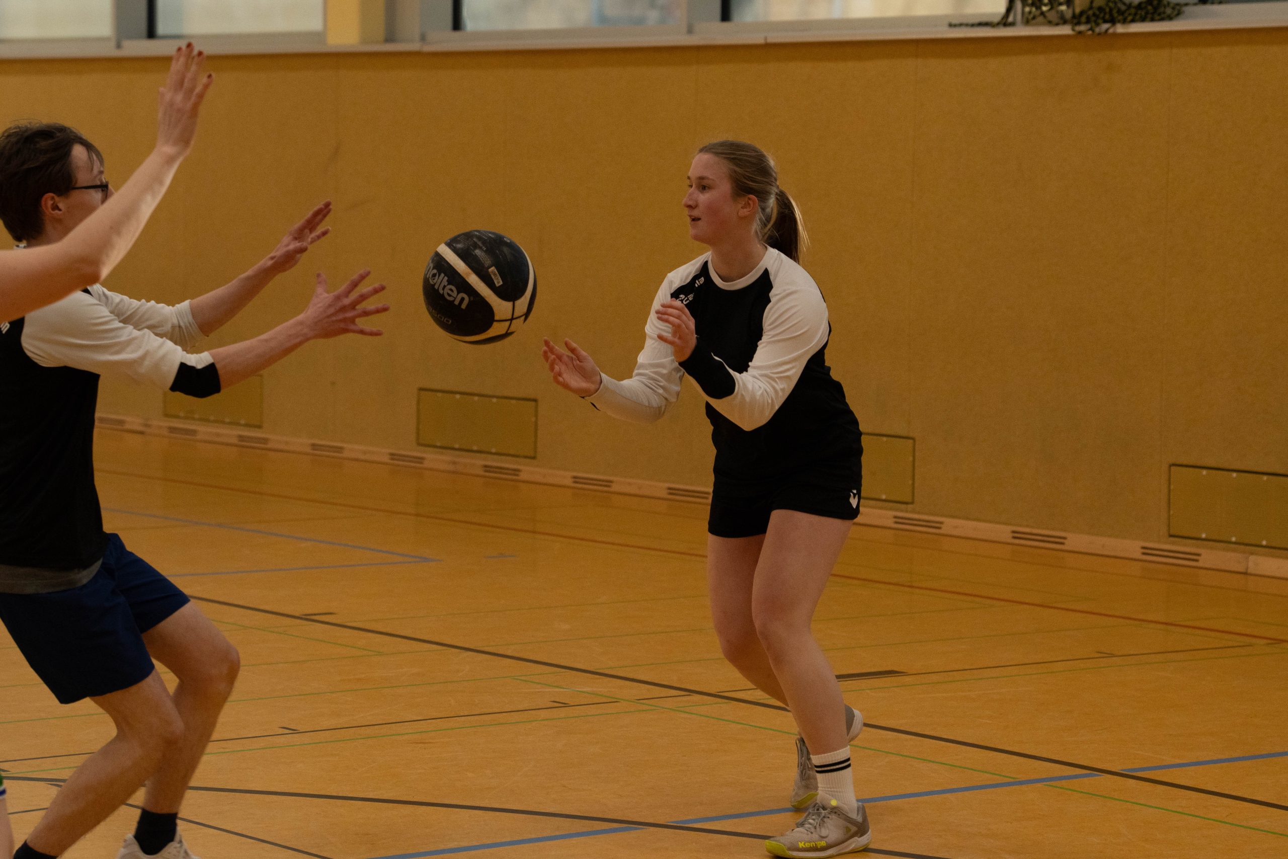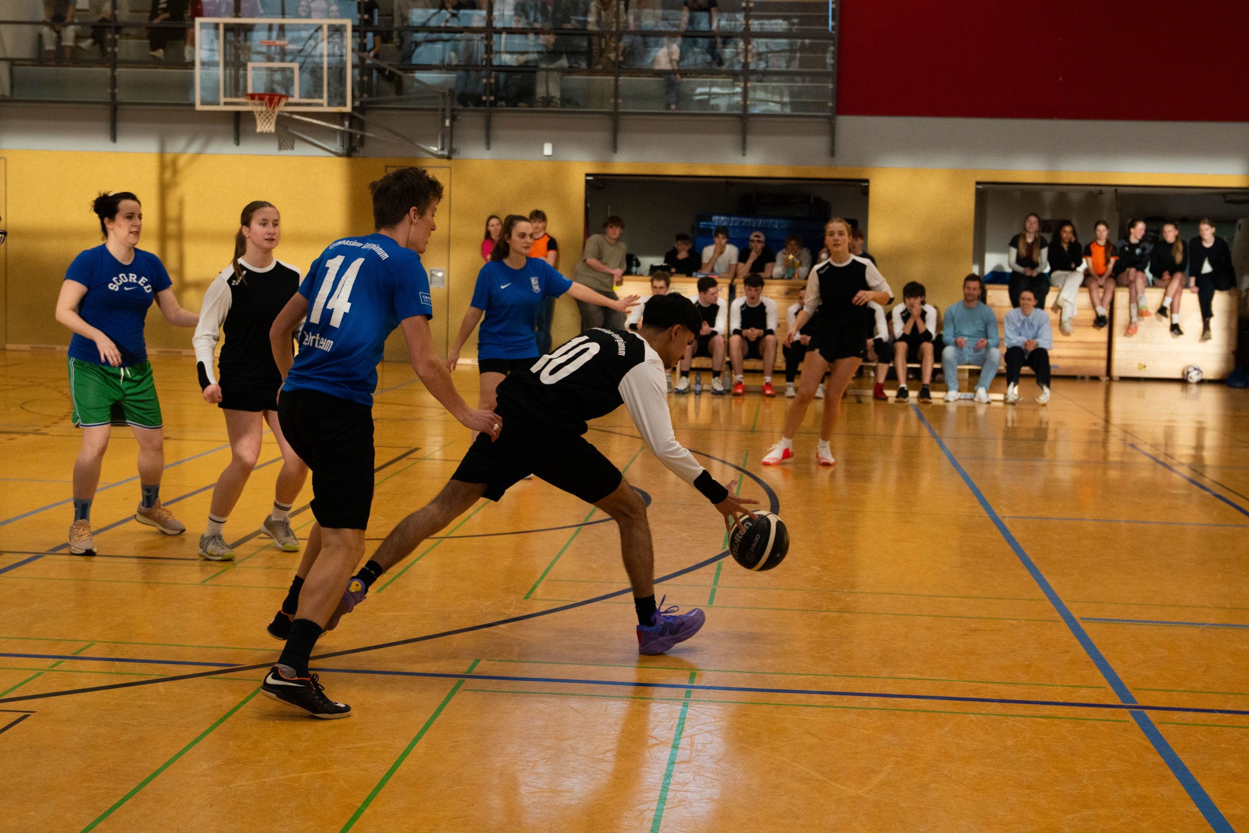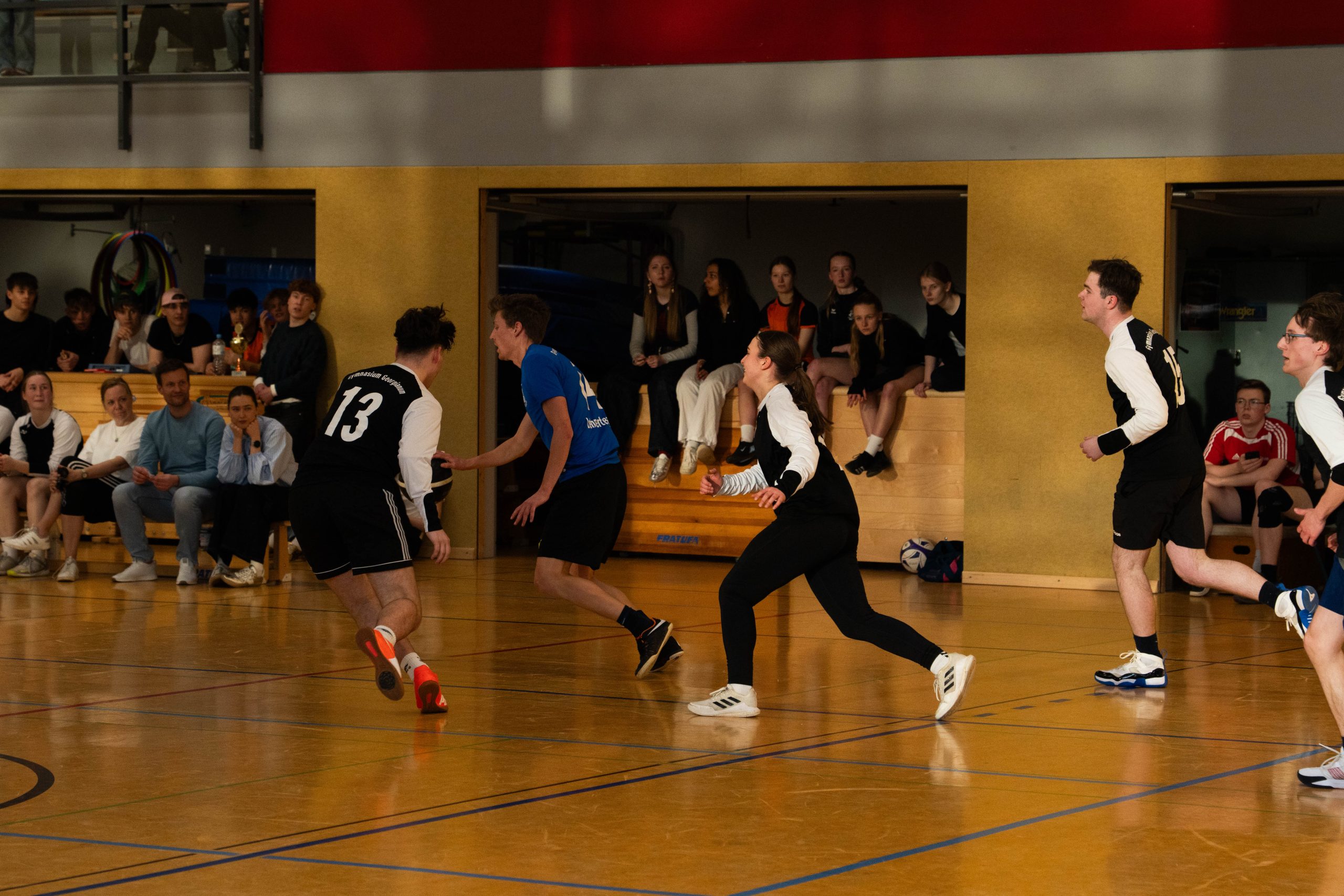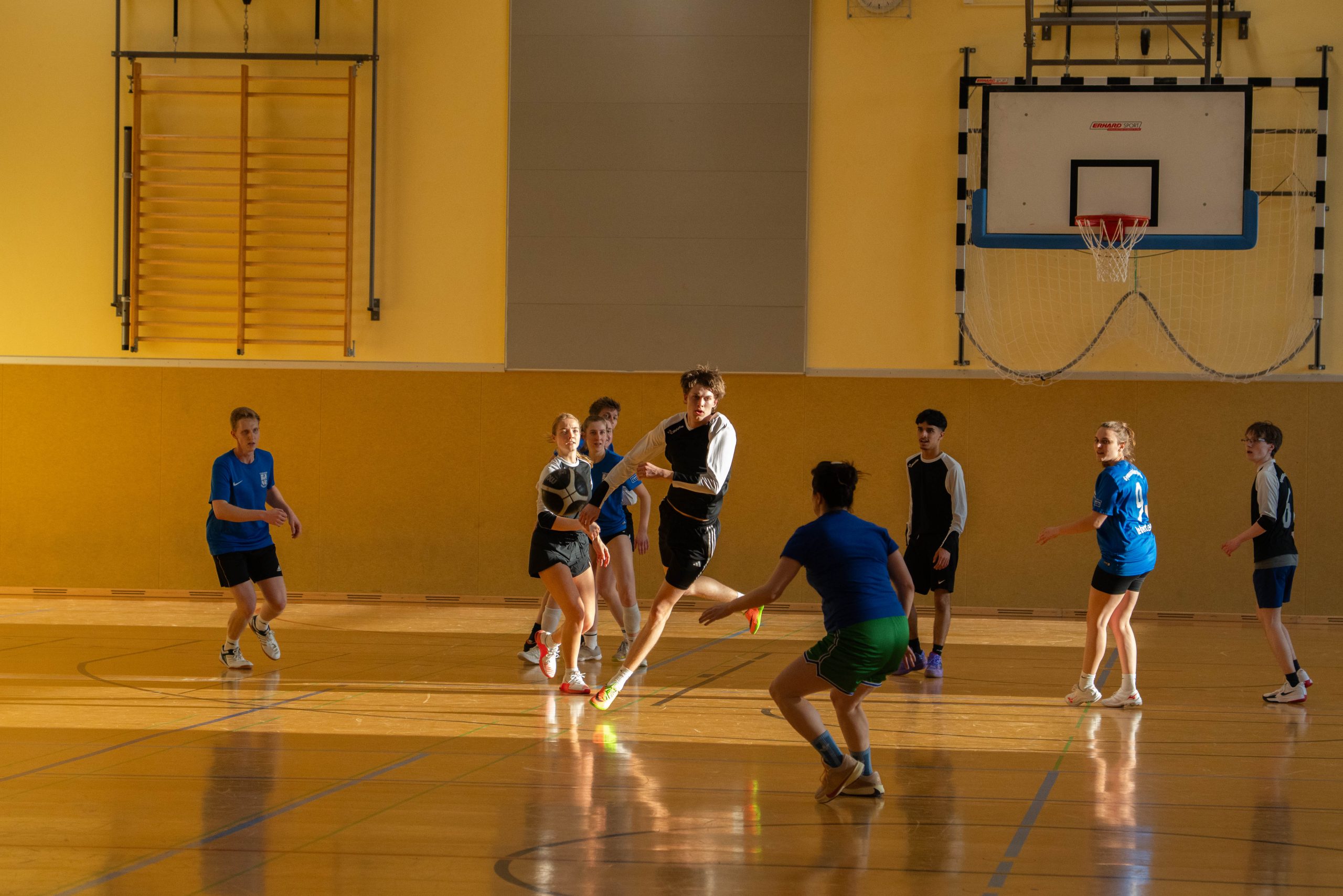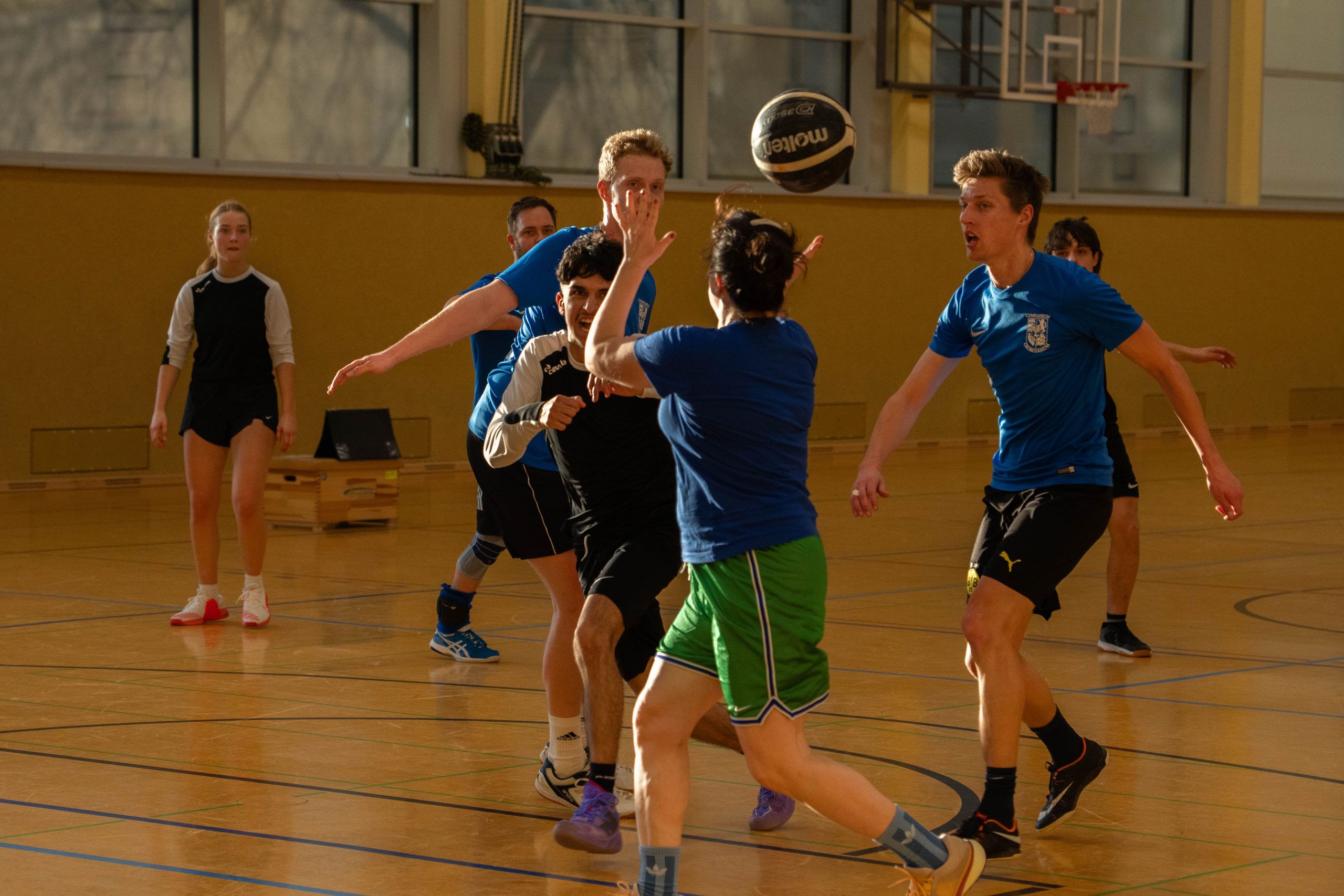 Im Basketball-Duell, das das Lehrerteam seit Einführung des Wettbewerbs noch nicht verloren hatte, gelang den Lehrkräften zumindest eine Schönheitskorrektur. Trotz der Ausfälle von Kyra Berends, Hendrik Greiwe und Jürgen Herbrüggen spielte das Team richtig stark. Allen voran Miriam Bach, Marcel Mentrup und Sarah Korte glänzten, doch auch David Janzen, Lena Frerich und Henning Bach wussten zu überzeugen. Obwohl auch die Schüler:innen alles gaben, fehlte es letztendlich an Absprache, sodass das eingespielte Lehrerteam in der zweiten Halbzeit ihren Vorsprung nutzte. „Die Schüler:innen werden nächstes Jahr hoffentlich besser vorbereitet sein“, sagte Anna Dahle, die der beeindruckenden Erfolgsserie der Lehrkräfte im Basketball gerne ein Ende setzen würde. Mit 19:10 stand am Ende der Erfolg, der zum 1:2 und damit zum letztlich gerechten Endergebnis führte.